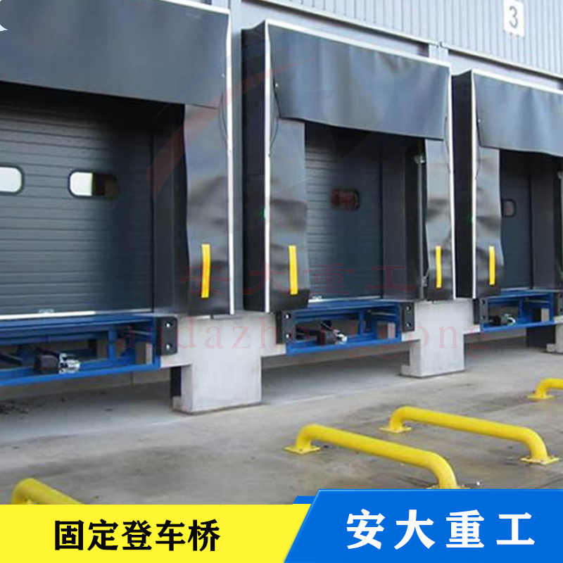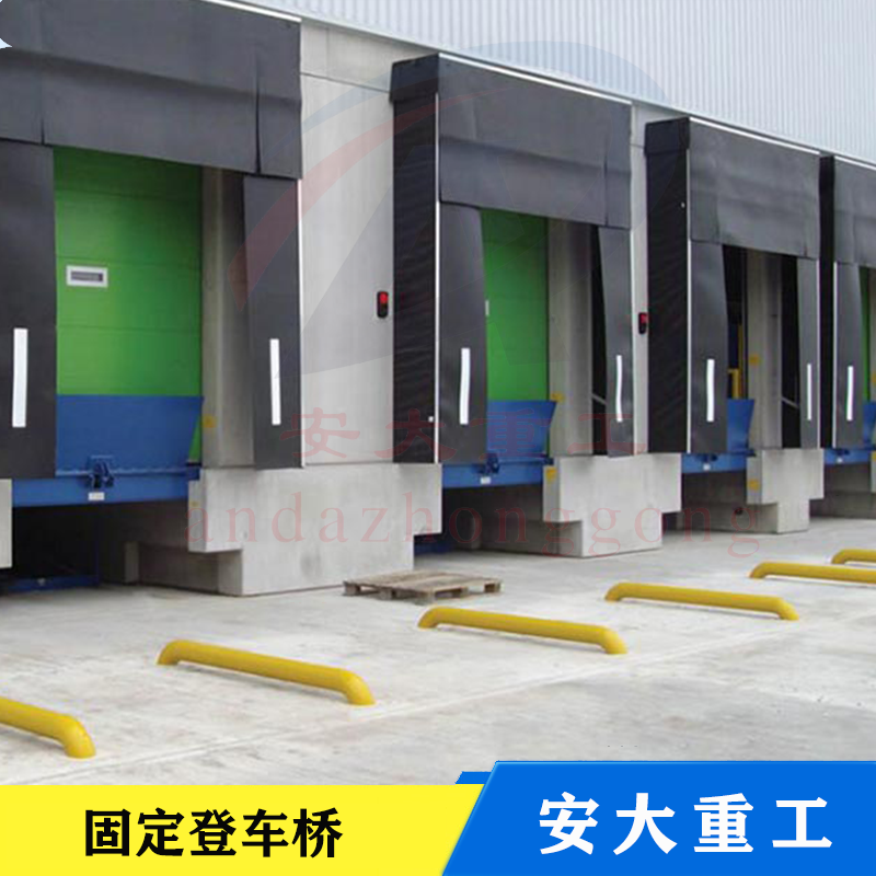 固定液壓登車橋式實現貨物快速裝的專用輔助設備,他的高度調節功能使貨車與庫房的貨臺之間架起一座橋梁,叉車等搬運車輛通過它能直接駛入貨車內部進行貨物的批量裝卸。